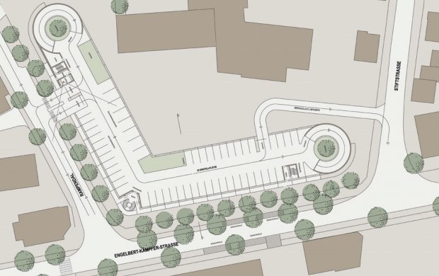 Städtebaulicher Entwurf und Konzeption für ein Parkhaus in der Innenstadt von Lemgo für 255 PKW im Auftrag der Stadtwerke Lemgo.